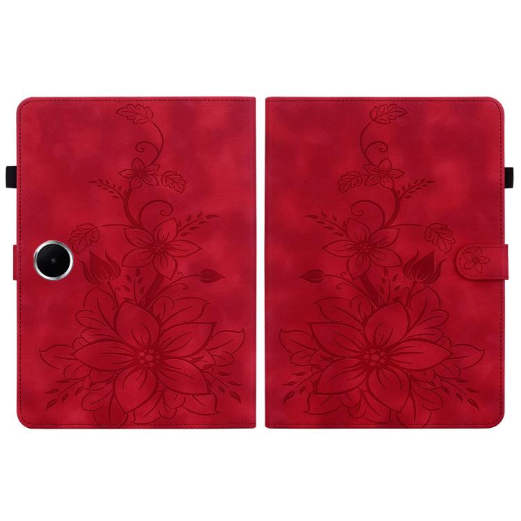 For OPPO Pad SE 11 inch Lily Embossed Leather Tablet Case(Red)