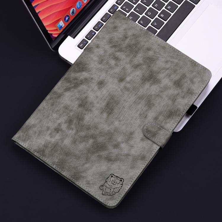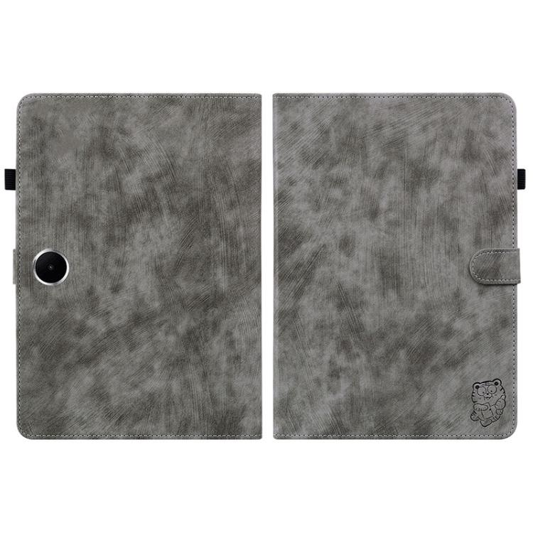 For OPPO Pad SE 11 inch Tiger Pattern Flip Leather Tablet Case(Grey)
