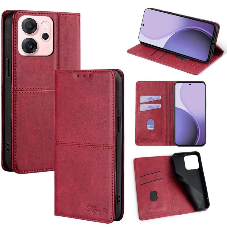 For OPPO Reno14 F 5G Cow Texture Magnetic Leather Phone Case(Red)