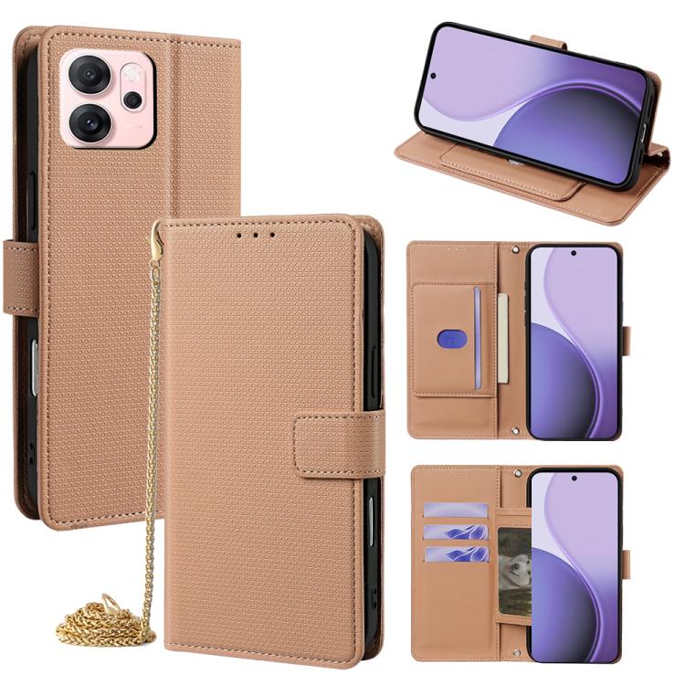 For OPPO Reno14 F 5G Crossbody Chain Triangle Leather Phone Case(Brown)