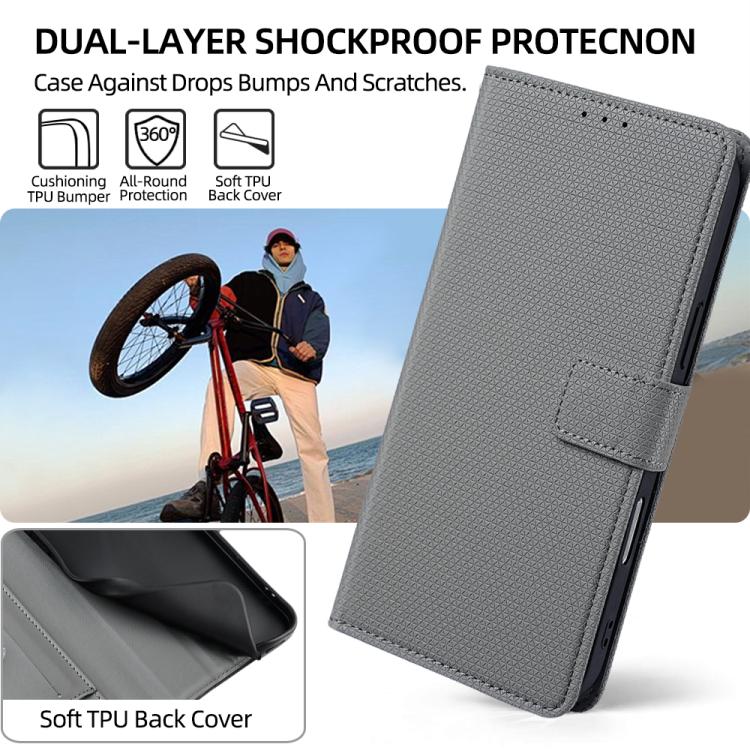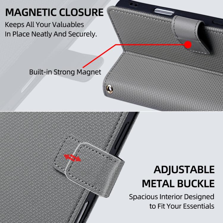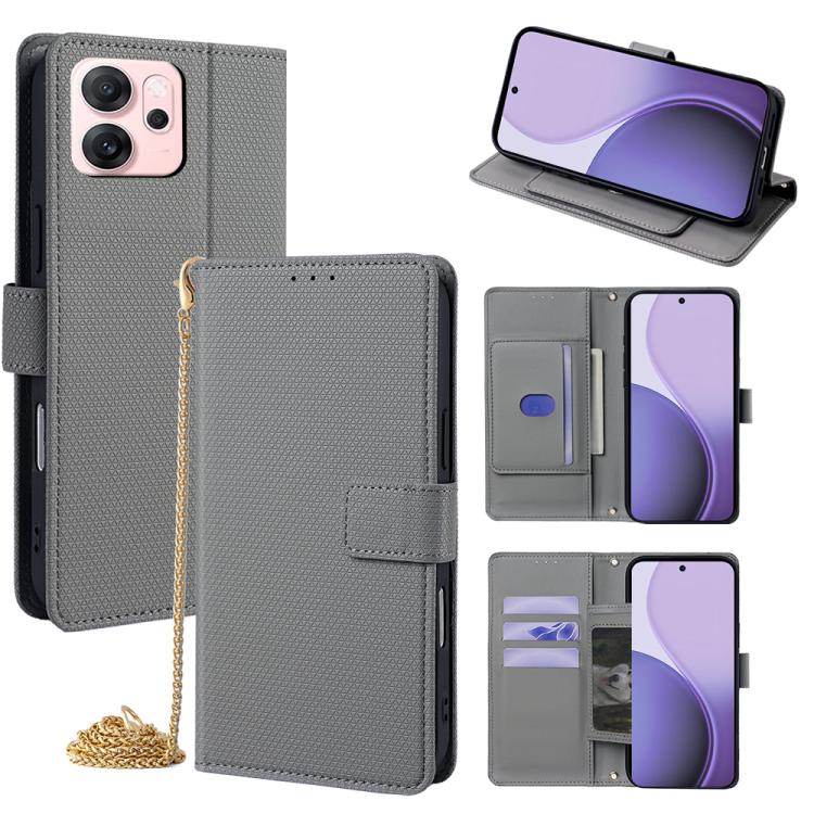 For OPPO Reno14 F 5G Crossbody Chain Triangle Leather Phone Case(Grey)