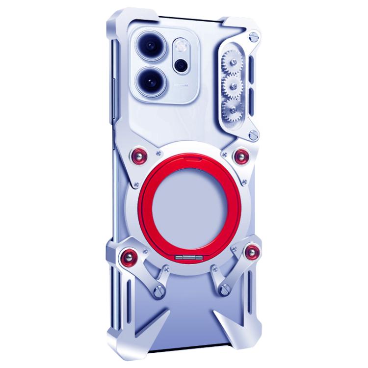 For OPPO Reno14 F 5G Global Rotating Bracket Hollow Metal Phone Case with Lanyard(Silver)