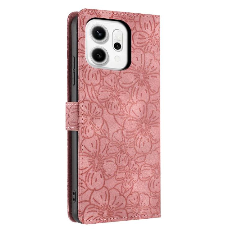 For OPPO Reno14 Global Cherry Blossoms Embossed Leather Phone Case(Pink)