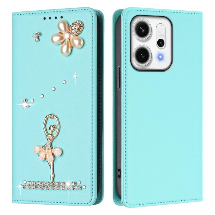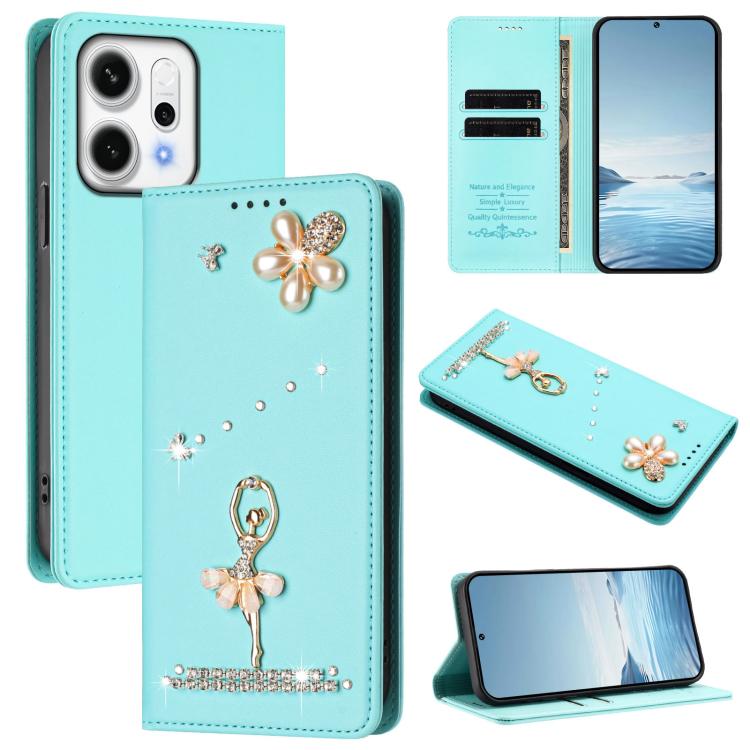 For OPPO Reno14 Pro 5G Global Ballet Girl Diamond Studded RFID Vegan Leather Phone Case(Mint Green)