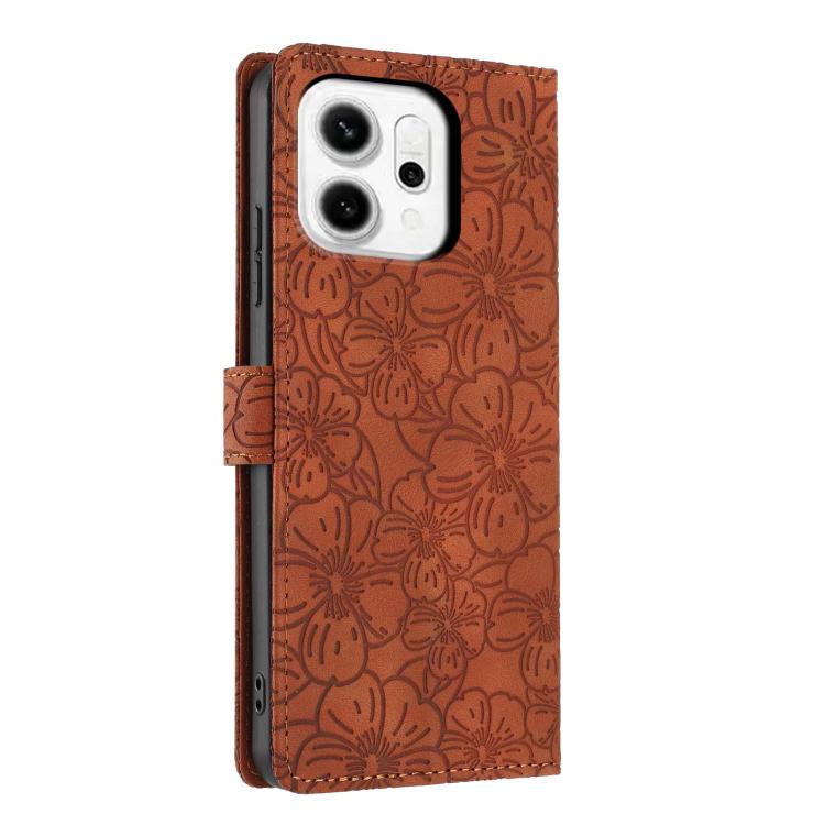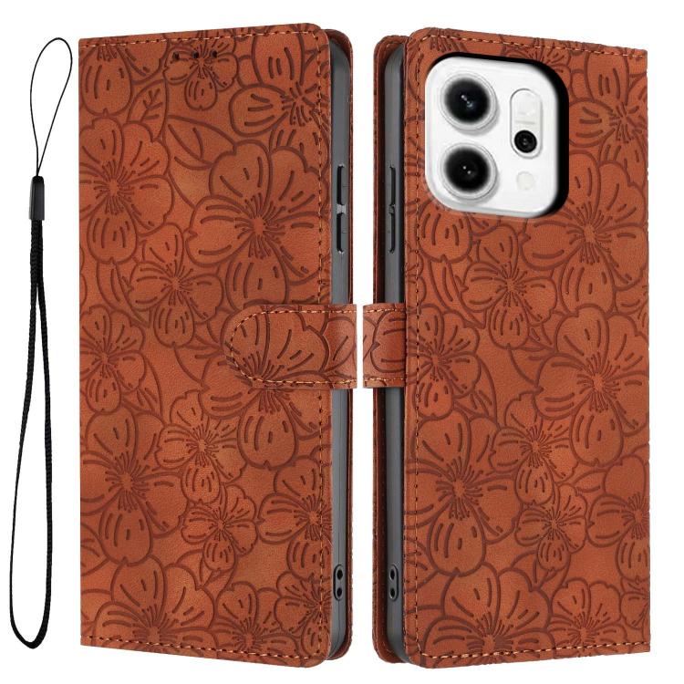 For OPPO Reno14 Pro Global Cherry Blossoms Embossed Leather Phone Case(Brown)