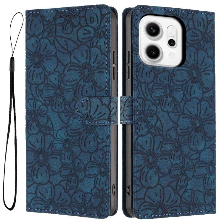 For OPPO Reno14 Pro Global Cherry Blossoms Embossed Leather Phone Case(Dark Blue)