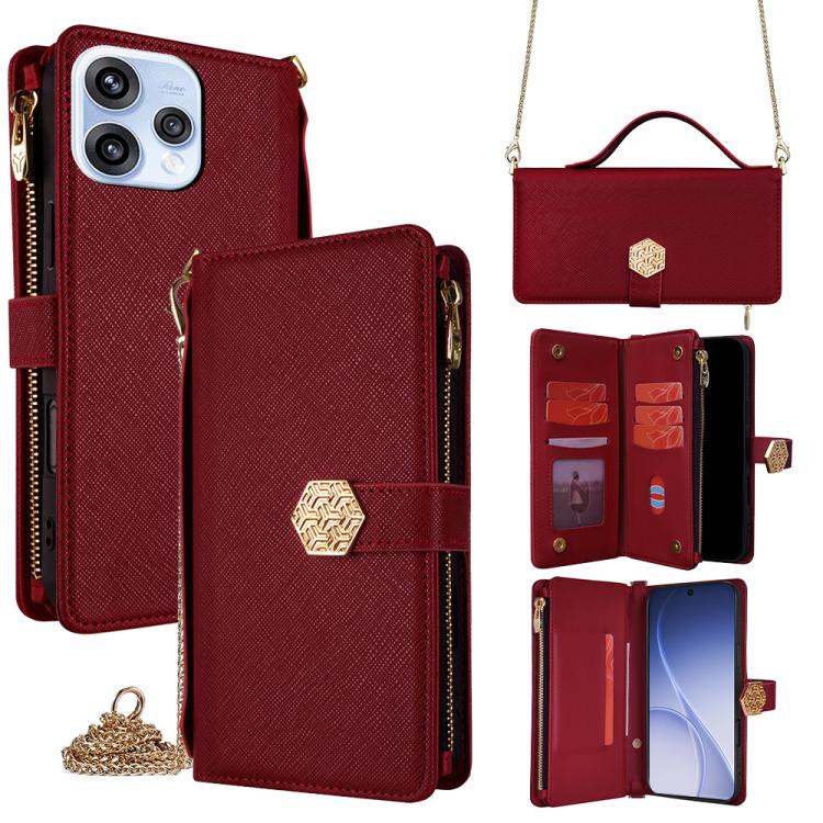 For OPPO Reno15 5G Global Crossbody Handle Cross Texture Leather Phone Case(Red)
