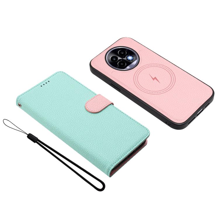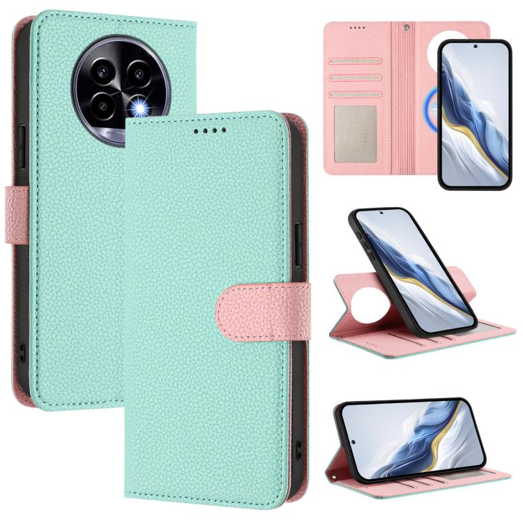 For Realme 13 Pro / 13 Pro+ 5G Detachable Litchi Texture Magnetic Vegan Leather Phone Case(Mint Green+Pink)