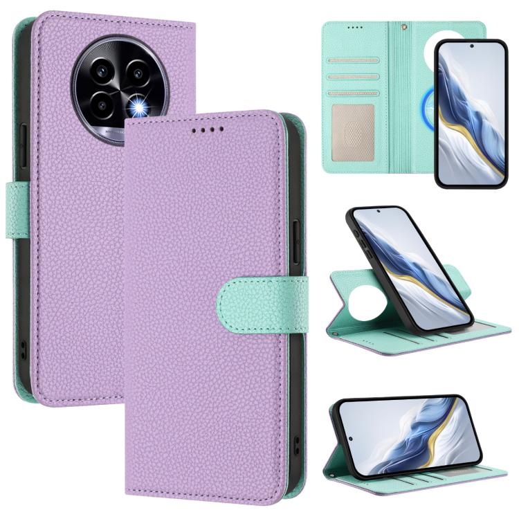 For Realme 13 Pro / 13 Pro+ 5G Detachable Litchi Texture Magnetic Vegan Leather Phone Case(Purple+Mint Green)