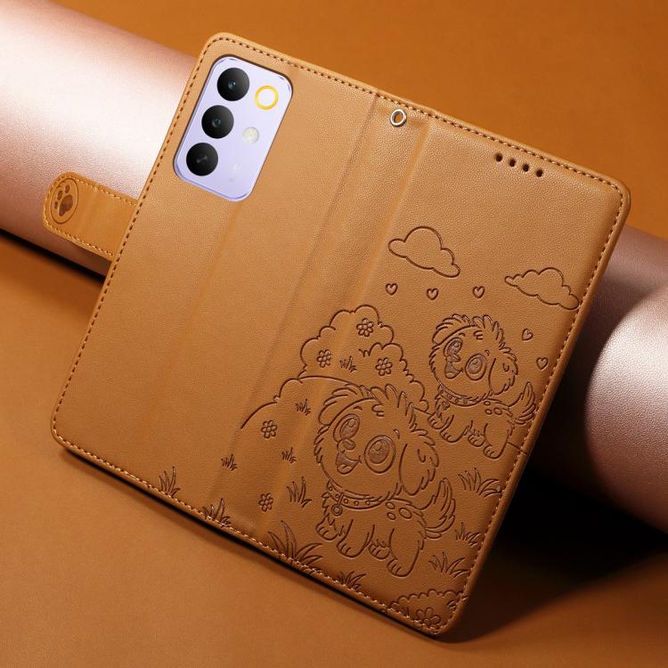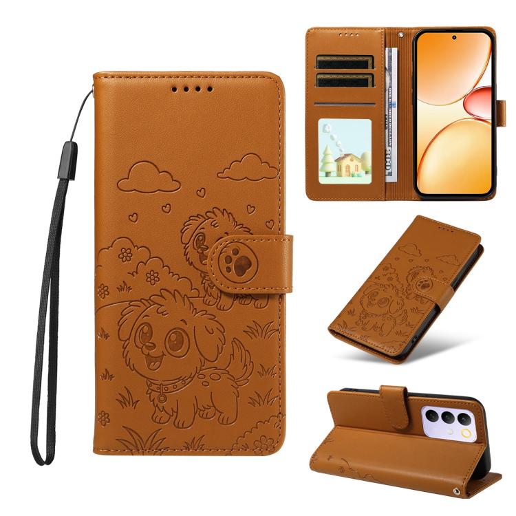 For Realme C85 Pro 4G Embossed Heart Dog RFID Blocking Wallet Leather Phone Case(Brown)