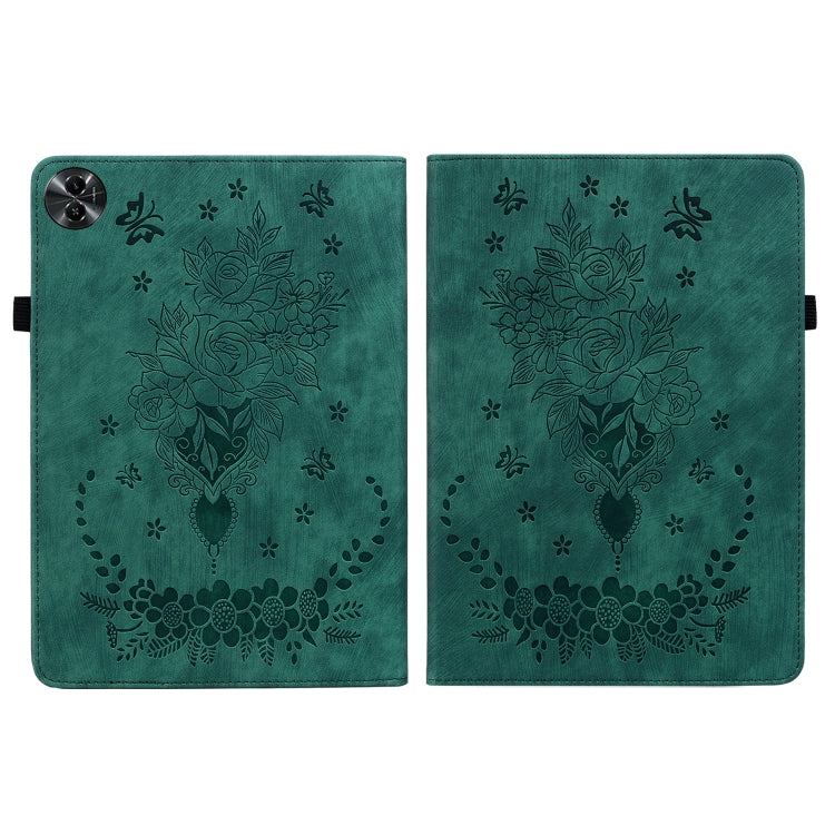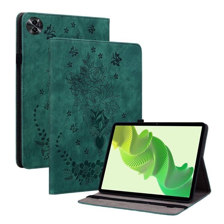 For Realme Pad 2 Butterfly Rose Embossed Leather Tablet Case(Green)