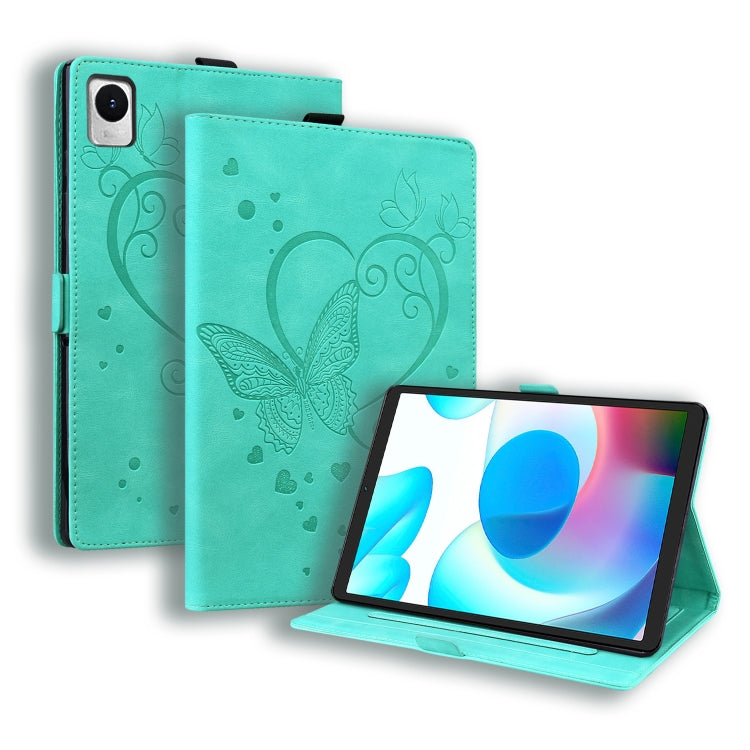 For Realme Pad Mini 8.7 inch Love Butterfly Pattern Leather Tablet Case with Holder & Sleep(Green)