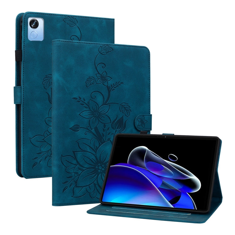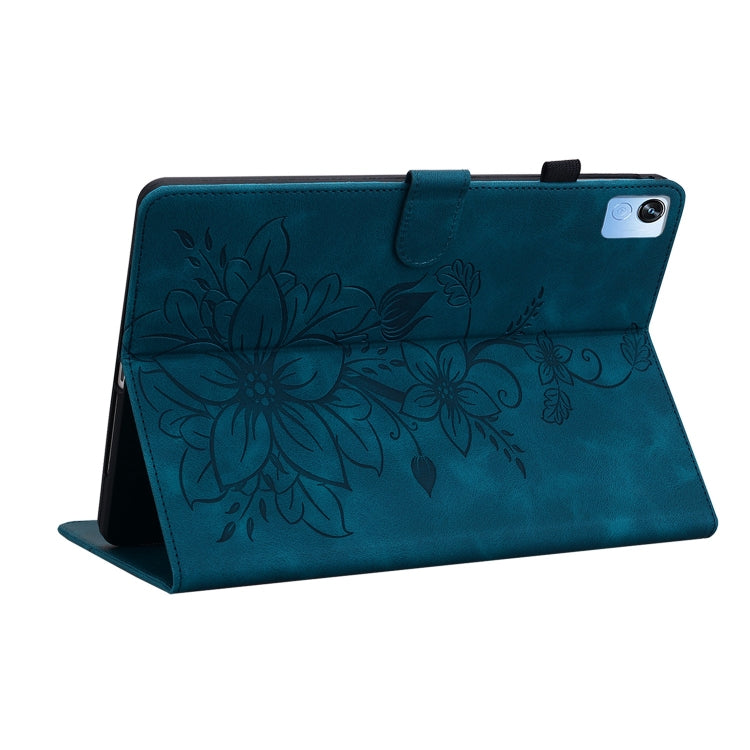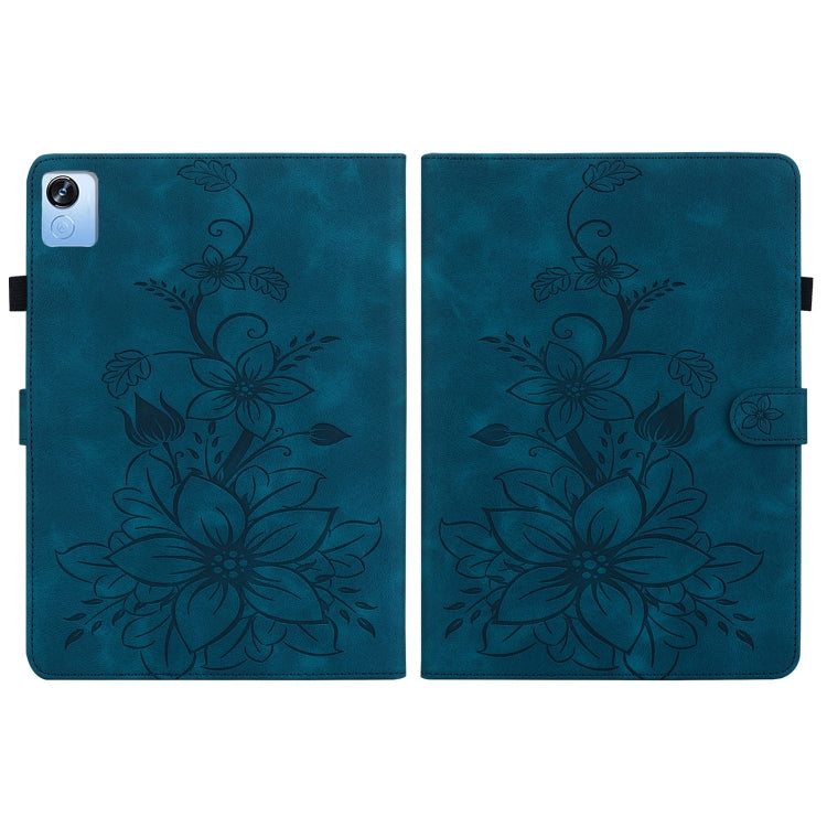For Realme Pad X Lily Embossed Leather Tablet Case(Dark Blue)