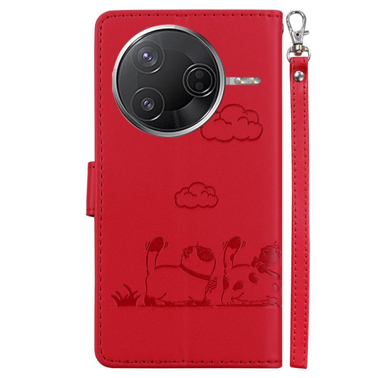 For Redmi K80 / K80 Pro / Xiaomi Poco F7 Pro Cute Cats RFID Leather Phone Case(Red)