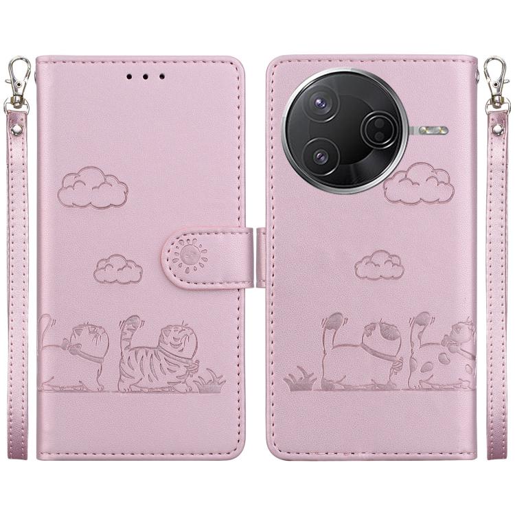 For Redmi K80 / K80 Pro / Xiaomi Poco F7 Pro Cute Cats RFID Leather Phone Case(Rose Gold)