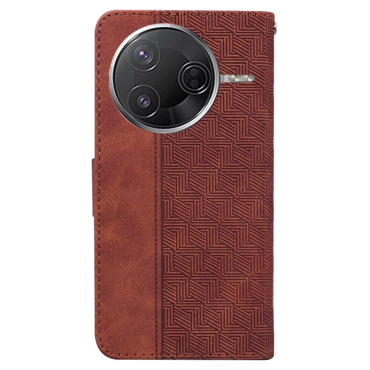 For Redmi K80 / K80 Pro / Xiaomi Poco F7 Pro Geometric Embossed Leather Phone Case(Brown)