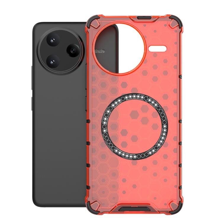 For Redmi K80 Pro 5G / Poco F7 Ultra Honeycomb Magnetic Ring Shockproof Phone Case(Red)