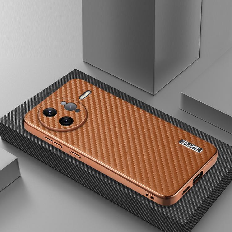 For Redmi K80 Pro AZNS Electroplated Edge Carbon Fiber Texture Phone Case(Brown)