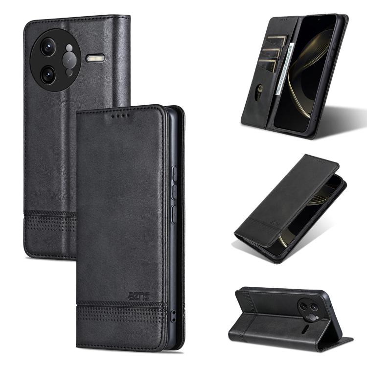 For Redmi K80 Pro AZNS Magnetic Calf Texture Flip Leather Phone Case(Black)