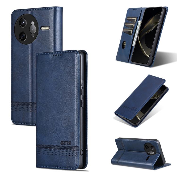 For Redmi K80 Pro AZNS Magnetic Calf Texture Flip Leather Phone Case(Dark Blue)