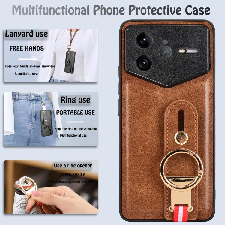 For Redmi K80 Pro Champion Edition Wristband Leather Back Phone Case(Brown)