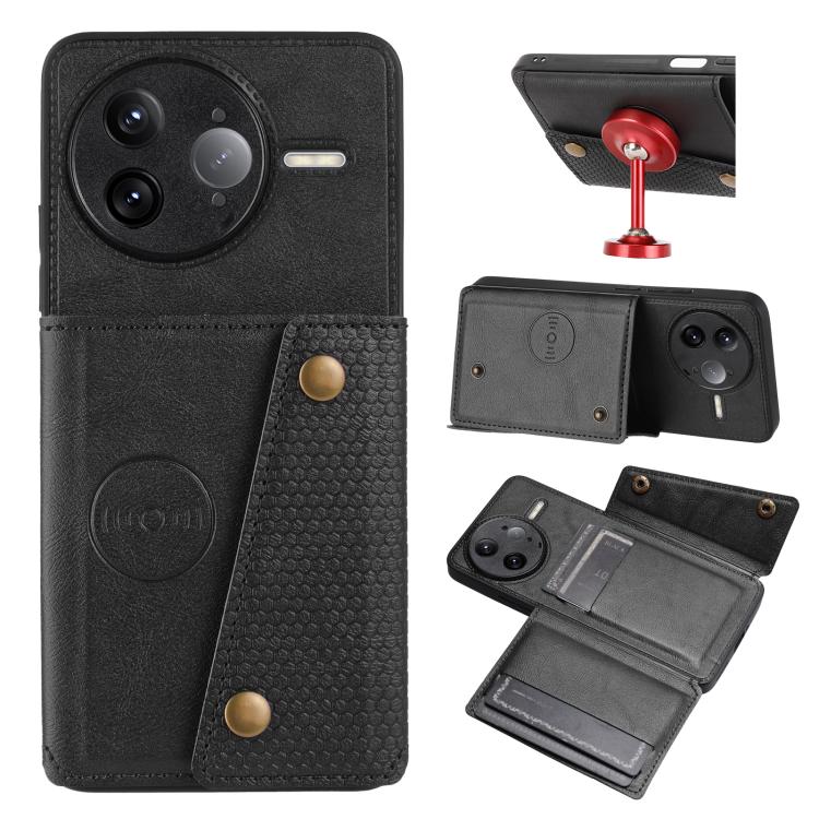 For Redmi K80 Pro Double Buckle Card Slots Magnetic Phone Case(Black)