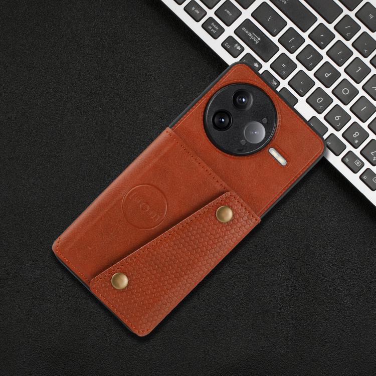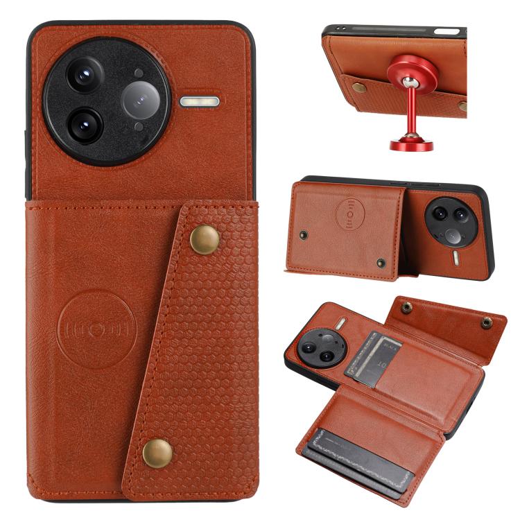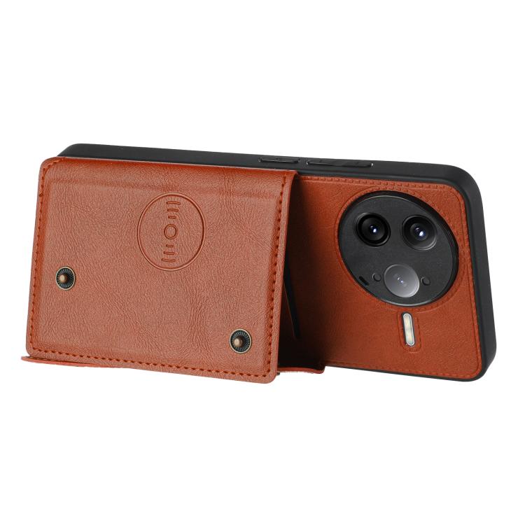 For Redmi K80 Pro Double Buckle Card Slots Magnetic Phone Case(Brown)