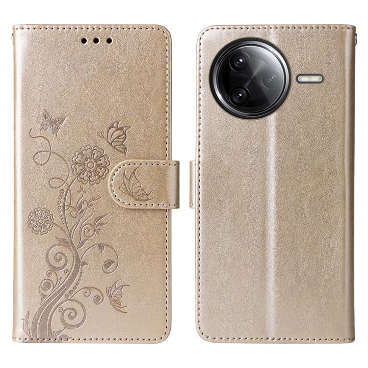 For Redmi K80 Pro Embossed Butterfly Flowers Leather Phone Case(Gold)