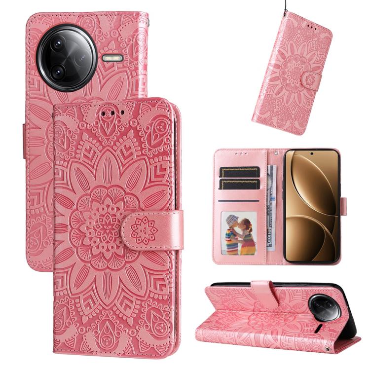 For Redmi K80 Pro Embossed Sunflower Leather Phone Case(Rose Gold)