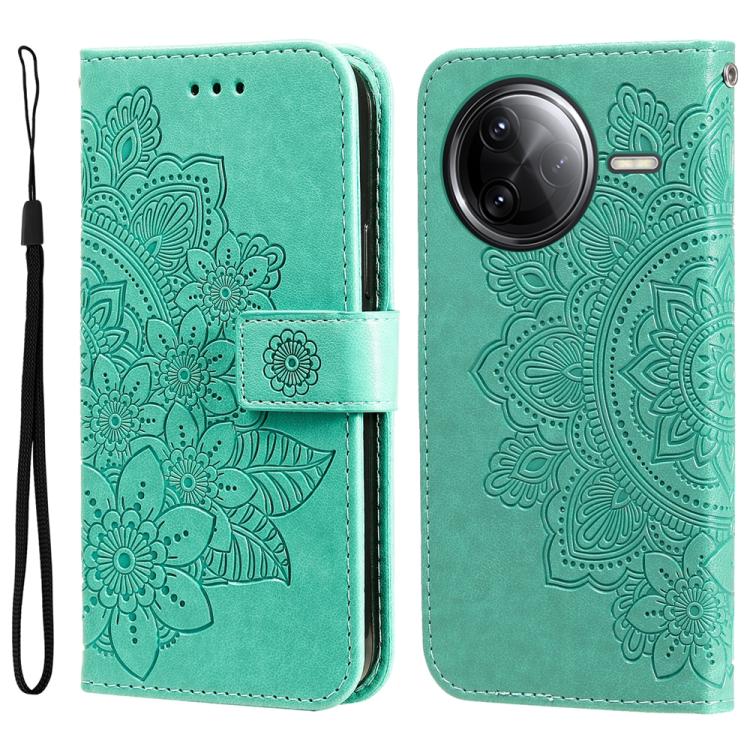 For Redmi K80 Pro Seven-petal Flowers Embossing Leather Phone Case(Green)