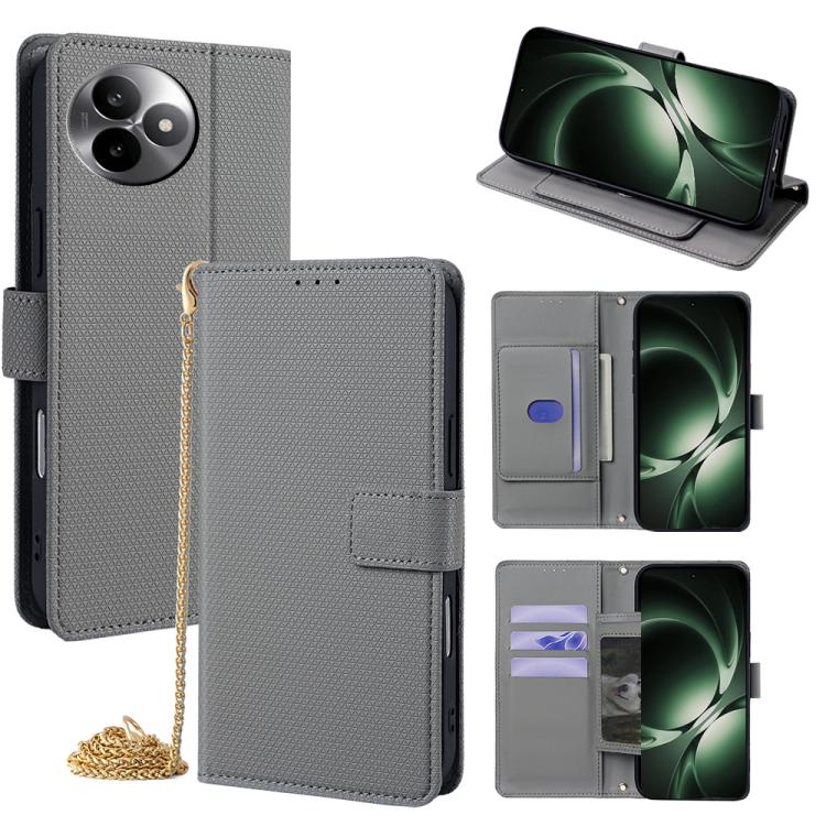 For Redmi K80 Ultra Crossbody Chain Triangle Leather Phone Case(Grey)