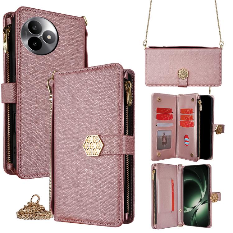 For Redmi K80 Ultra Crossbody Handle Cross Texture Leather Phone Case(Rose Gold)