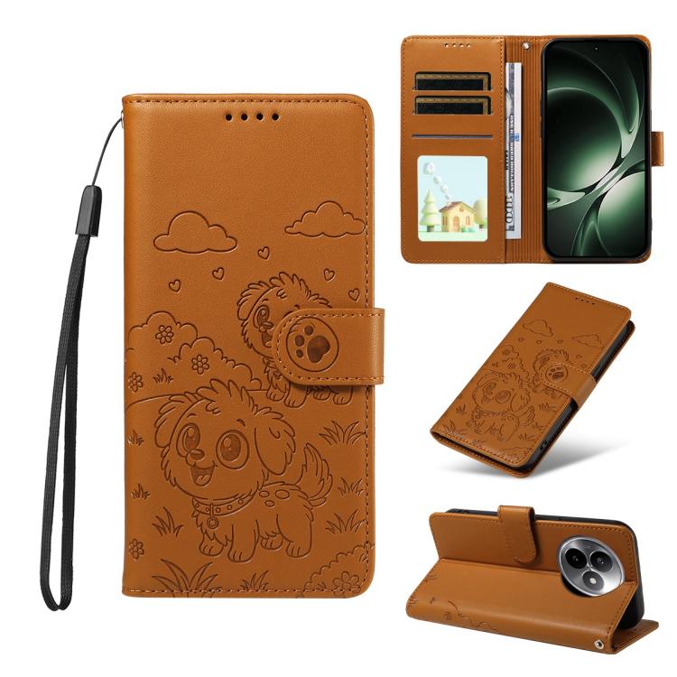 For Redmi K80 Ultra Embossed Heart Dog RFID Blocking Wallet Leather Phone Case(Brown)