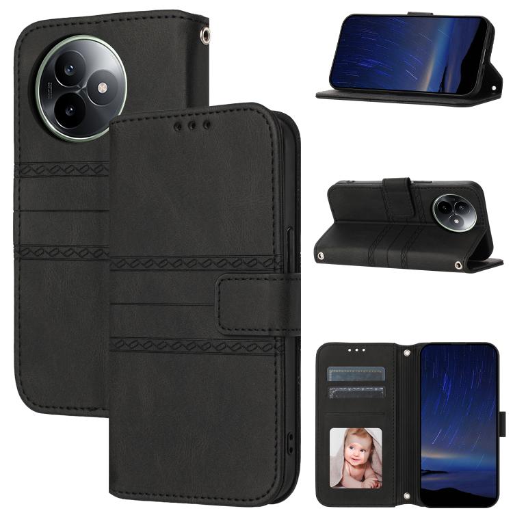 For Redmi K80 Ultra Embossed Stripes Skin Feel Leather Phone Case(Black)