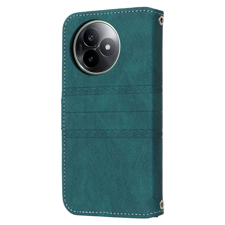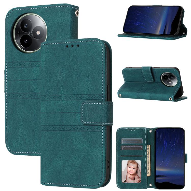 For Redmi K80 Ultra Embossed Stripes Skin Feel Leather Phone Case(Dark Green)