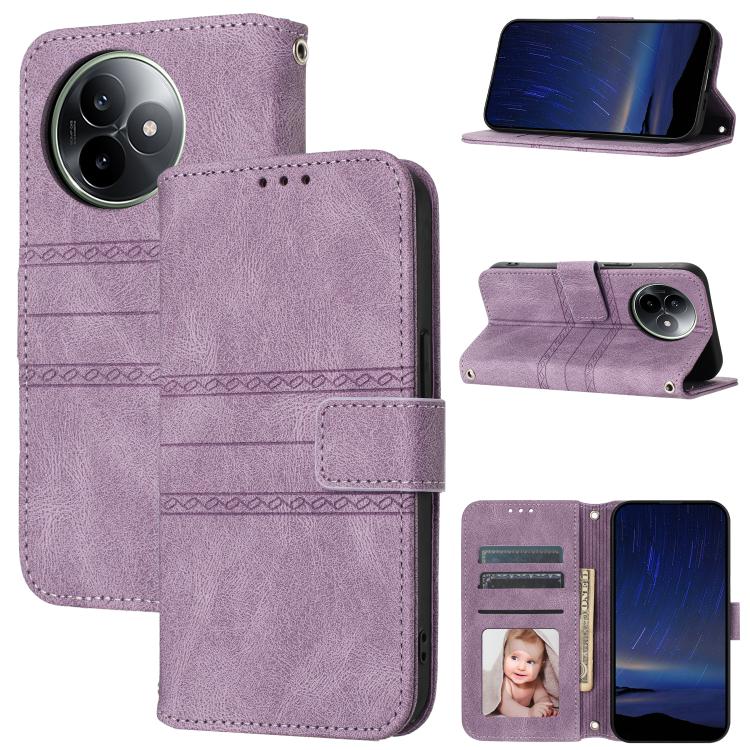 For Redmi K80 Ultra Embossed Stripes Skin Feel Leather Phone Case(Light Purple)