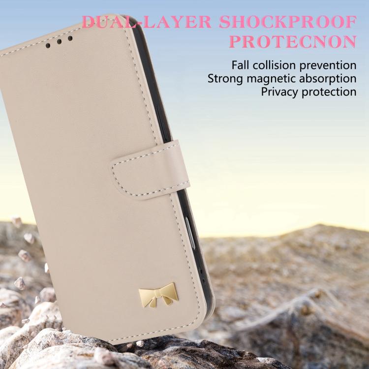 For Redmi K80 Ultra Metal Bow Leather Phone Case with Hand Strap(Apricot)