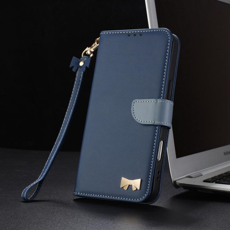 For Redmi K80 Ultra Metal Bow Leather Phone Case with Hand Strap(Dark Blue)