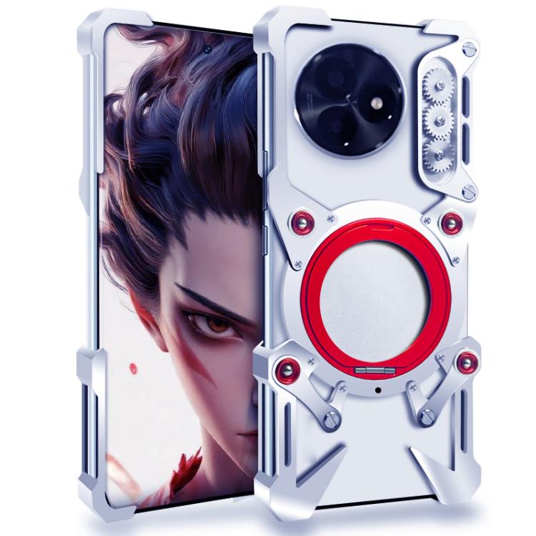 For Redmi K80 Ultra Rotating Bracket Hollow Metal Phone Case with Lanyard(Silver)