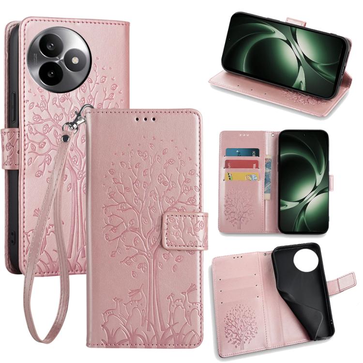 For Redmi K80 Ultra Tree & Deer Embossed Leather Phone Case(Rose Gold)