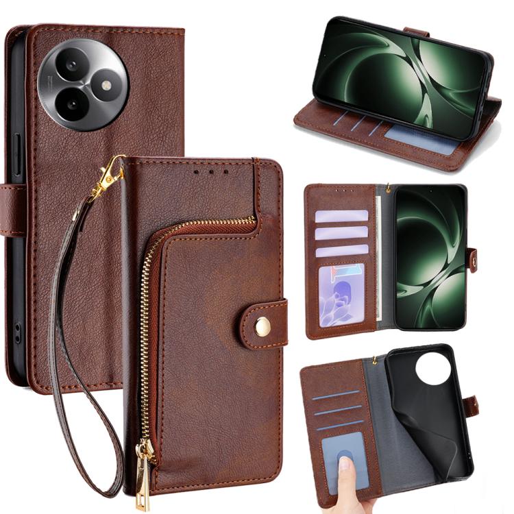 For Redmi K80 Ultra Zipper Bag Leather Phone Case(Brown)
