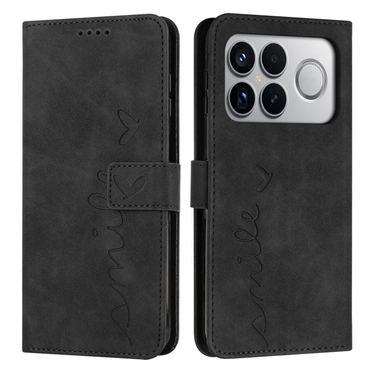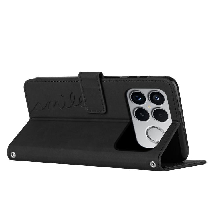 For Redmi K90 Pro Max / Poco F8 Ultra Skin Feel Heart Embossed Leather Phone Case with Long Lanyard(Black)