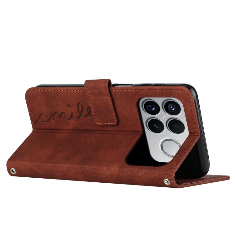 For Redmi K90 Pro Max / Poco F8 Ultra Skin Feel Heart Embossed Leather Phone Case with Long Lanyard(Brown)