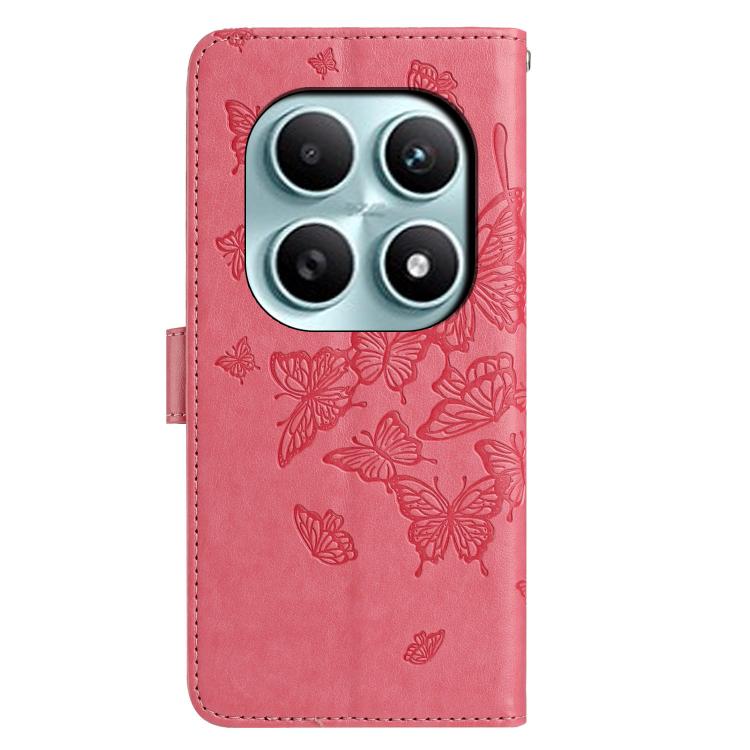 For Redmi Note 15 5G Global 164mm Butterfly Flutter Pattern Embossed Leather Phone Case(Rose Red)