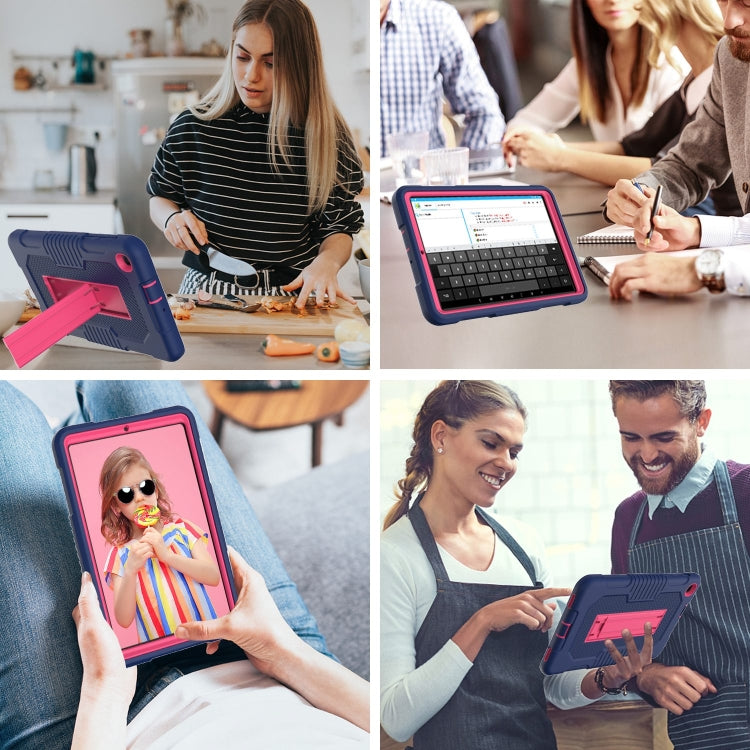 For Samsung Galaxy A 8.4 T307 Contrast Color Robot B2 Silicone Hybrid PC Tablet Case with Holder(Navy Blue Rose)