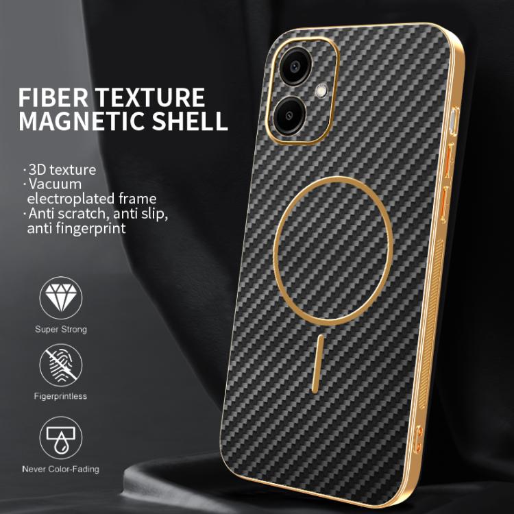 For Samsung Galaxy A06 4G Carbon Fiber Electroplated Thin Ring MagSafe Phone Case(Black)