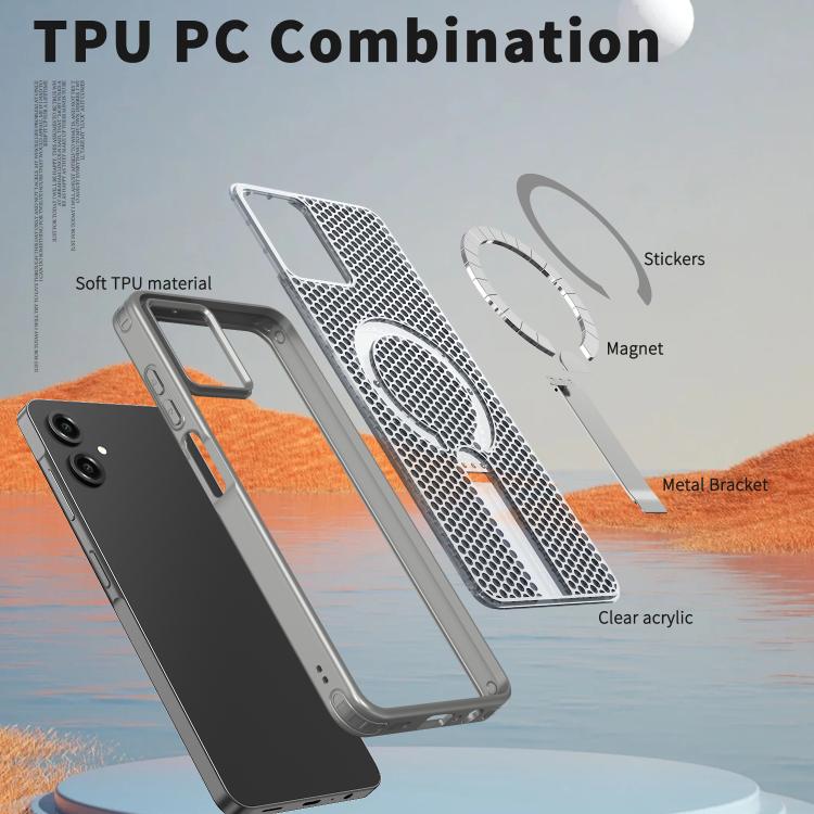 For Samsung Galaxy A06 5G / 4G Honeycomb Cooling MagSafe Holder Phone Case(Titanium Grey)