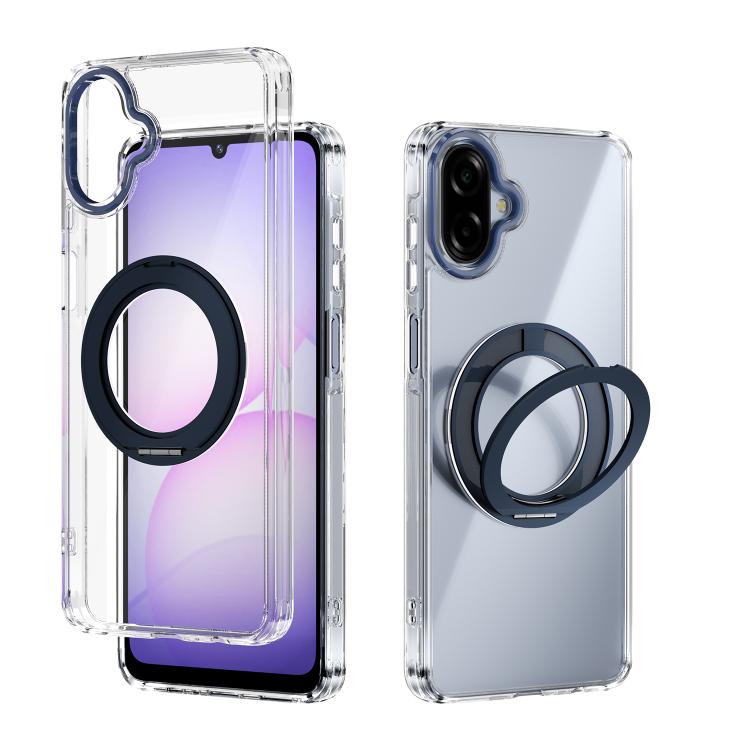 For Samsung Galaxy A07 4G ABEEL MagSafe Q-LUCK Pivot Bracket Transparent Phone Case(Dark Blue)