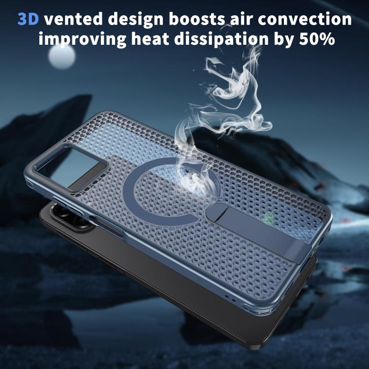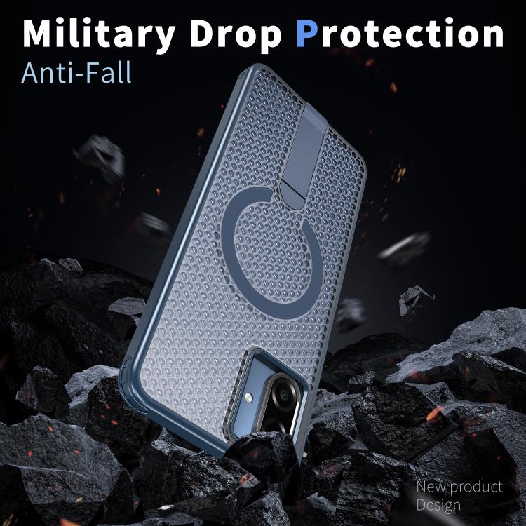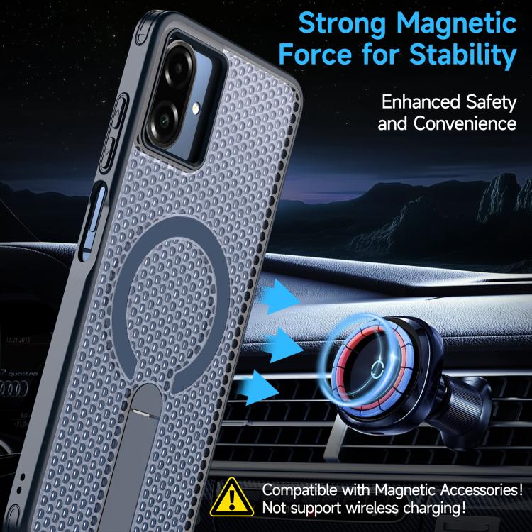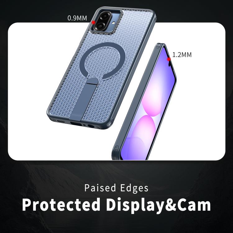 For Samsung Galaxy A07 4G Honeycomb Cooling MagSafe Holder Phone Case(Blue)