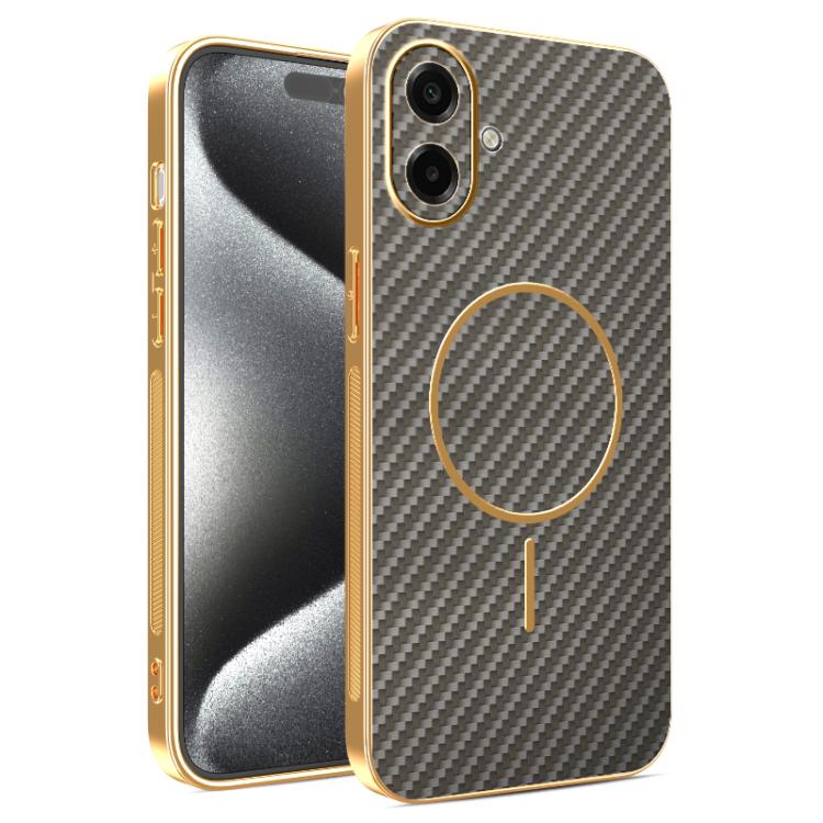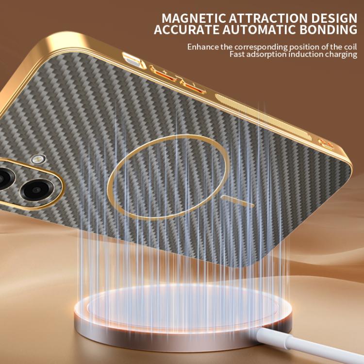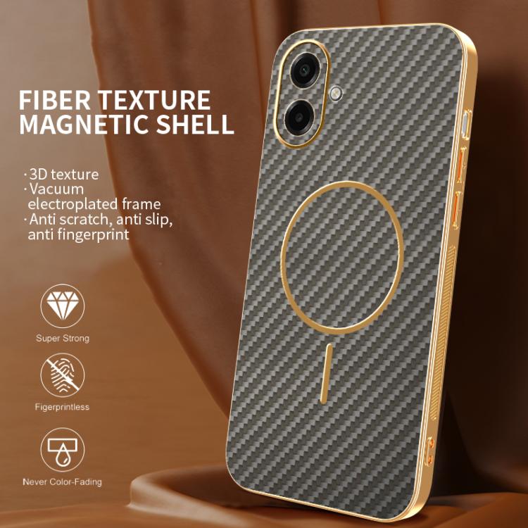 For Samsung Galaxy A07 5G Carbon Fiber Electroplated Thin Ring MagSafe Phone Case(Coffee)